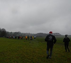 Um 10Uhr gingen dann die Marathonis und die Kandidaten für die 17km nach einem gemeinsamen Gang zum Carl Schmachtenberg Denkmal in Duessel auf die Strecke: erst ein Berg, dann Matsch. So sollte es die folgenden Stunden weiter gehen, und die insgesamt gut 120 Teilnehmer hatten überwiegend und sichtlich Spaß an dem Gerutsche. Der Nieselregen verliess uns den ganzen Tag nicht mehr. Besonders gross war diesmal der Anteil der Läufer, die nur diese ersten 17km mitgelaufen sind - in Hinblick auf den bevorstehenden Silvesterabend keine unkluge Entscheidung. Fuer die Marathonis und einige 26km Laeufer ging es dann weiter - nach ca. 4:15 erreicht die recht kleine, schnellere Gruppe das Ziel. Aus der langsameren Gruppe hatten sich bereits auf der ersten Hälfte einige kleine Splittergruppen nach hinten abgesetzt, die durch unsere Lauf- und Fahrradscouts begleitet wurden. Da es niemand eilig hatte, versuchte das Hauptfeld mit gut 30 Leuten dann immer wieder an den Verpflegungständen etwas zu warten, um den Abstand zu verkürzen - allerdings wurde es durch den Regen bei ca. 4°C dann auch schnell kalt, so dass man auch nicht zu lange stehen bleiben konnte. So erreichte die inzwischen etwas auseinandergezogene Hauptgruppe nach ca. 5Std das Ziel. Die Duschen waren heiss, es gab Urkunden und zufriedene Gesichter. Vielen Dank an alle fürs Kommen, Mitmachen oder Mithelfen. Gutes 2012!